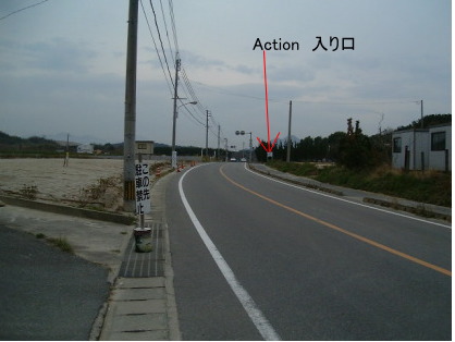 別荘地の道路向かいにアクションの小さな看板があります。ここが空と海への入り口です。